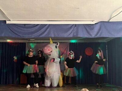 Adaptaron la entrañable historia «Un unicornio en vacaciones» 🦄 a formato teatral, haciendo una puesta en escena maravillosa que capturó la atención y las emociones de pequeños y mayores. Aunque inicialmente estaban previstos tres pases, la acogida fue tan positiva que finalmente se realizaron cuatro funciones, permitiendo así que todo el alumnado del centro pudiera asistir y disfrutar de este gran espectáculo 🎭.