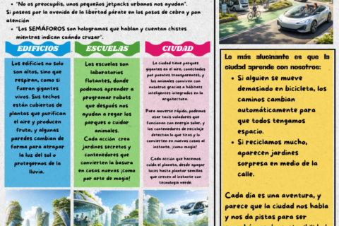 El alumnado crea e interpreta una canción que se convierte en el himno de la feria, transmitiendo mensajes clave sobre el cuidado del planeta, la convivencia y la responsabilidad compartida. Este producto final refuerza el sentimiento de pertenencia y el compromiso colectivo.