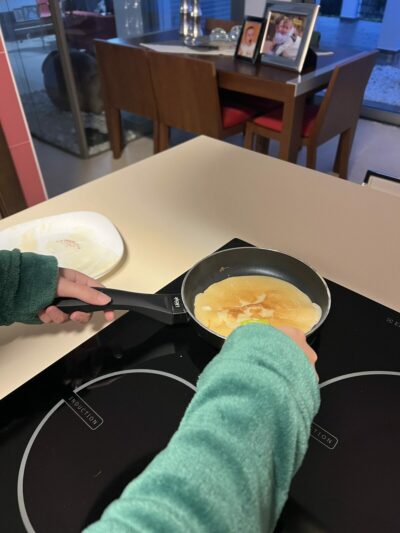 - Preparación de crepes en talleres prácticos, siguiendo instrucciones en francés.