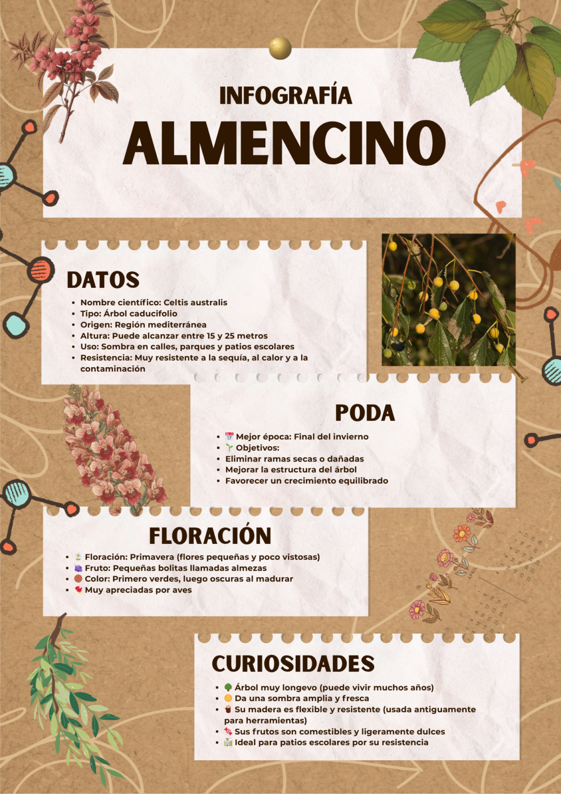- 🌳 Almencino (almez): sombra, frutos, biodiversidad