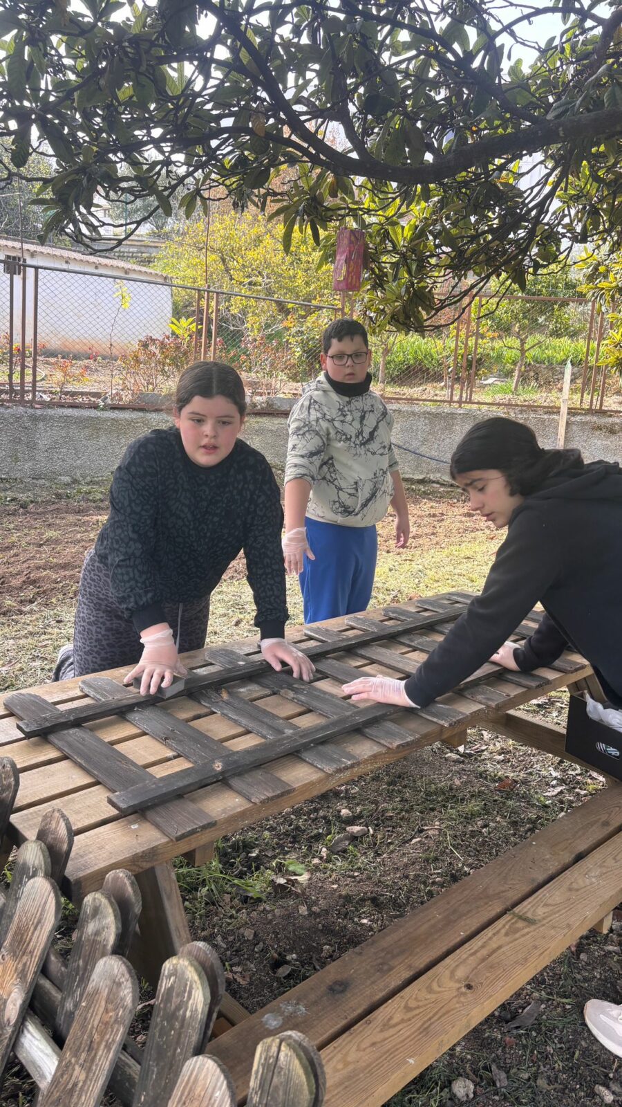 - Lijado y barnizado de estructuras del huerto.